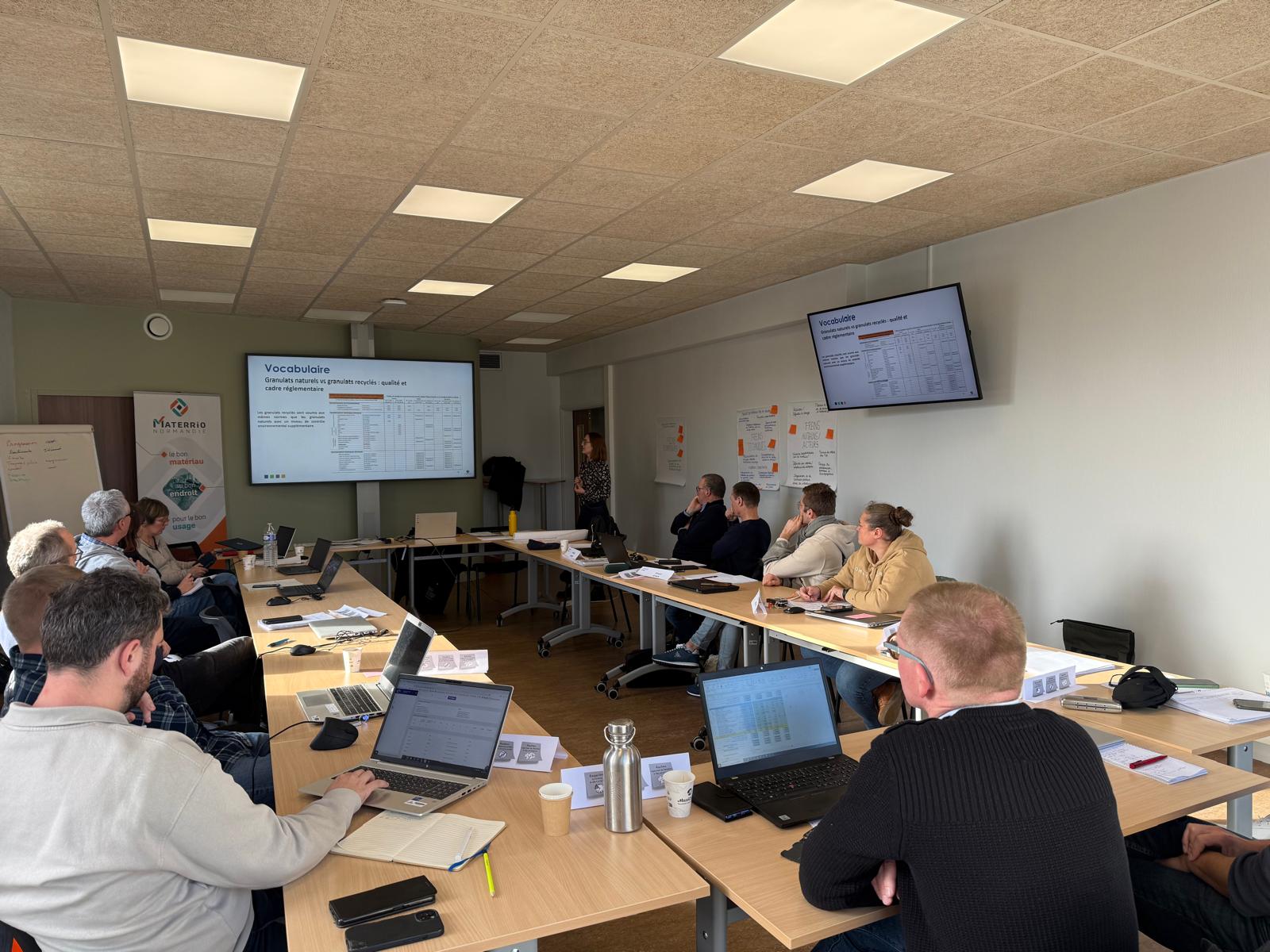 Mercredi, un atelier consacré au réemploi dans les Travaux Publics s’est tenu avec Caen la mer, adhérent de Materrio Normandie depuis 2020. Une dizaine de participants issus de différents services (infrastructures, cycle de l’eau, espaces publics, achats, transition écologique) ainsi que deux entreprises partenaires étaient réunis.